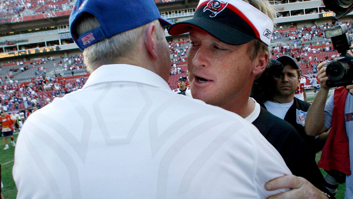 As Gruden unpacked the box, he spent a significant amount of time reminiscing about Giants lore.