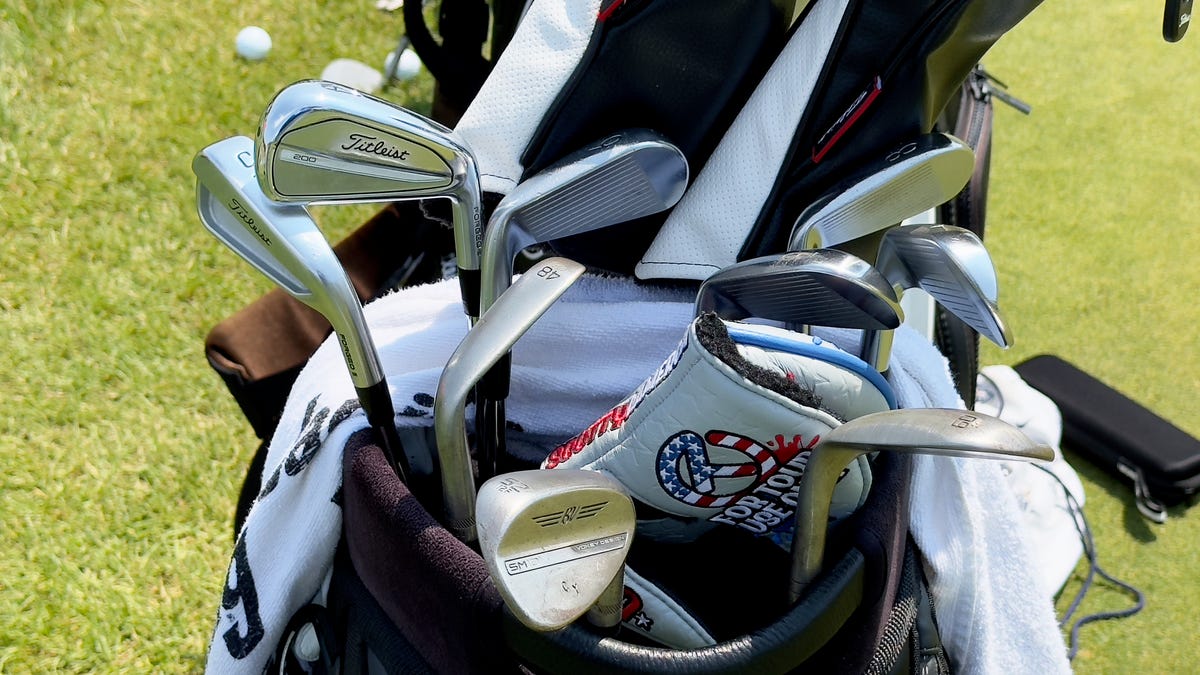 IRONS: Titleist T200 (4), T100 (5), 631.CY prototype (6-9), with True Temper Dynamic Gold X7 shafts