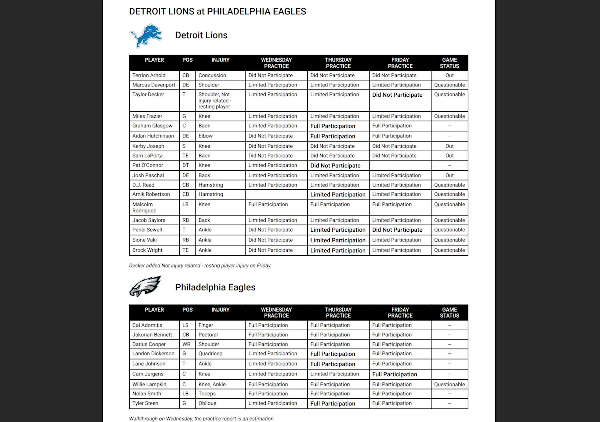 #Lions #final #injury #report #medical #analysis #Week #Eagles