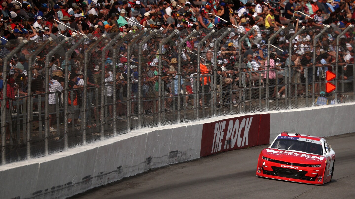 Jesse Love went from third to first on the overtime restart to win Saturday’s NASCAR Xfinity race at Rockingham Speedway, the first Xfinity race at the historic track since 2004.