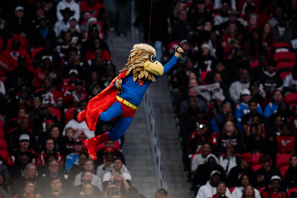 Freddie the Falcon, the longtime Atlanta mascot who’s developed a new sense of thrilling adventure in the last few seasons, is about to launch himself out into that open air. Safety techs around Freddie are confirming the security of the harness, connections and ropes. There are no acceptable mistakes in this line of work. It’s four hours before kickoff, and we’re in the final dry run for an in-game stunt. The seats are empty and the music has now been silenced, giving this massive stadium a vaguely chilling feel.
