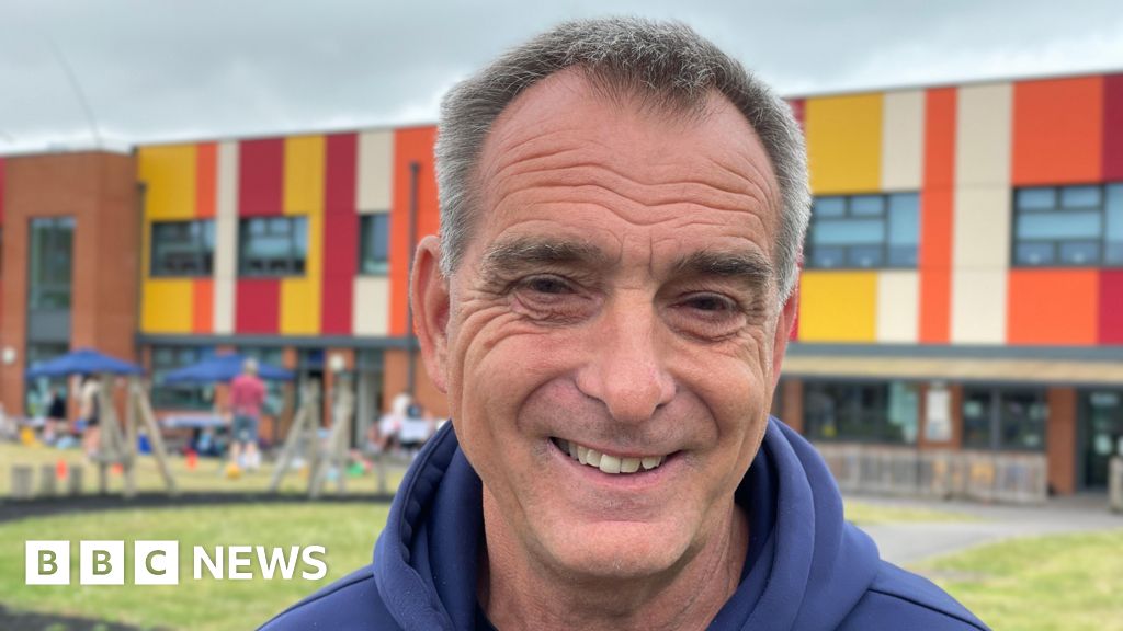 Stuart Langworthy A smiling man in his early sixties with grey hair. He is wearing a hoodie. A building and a play area are in the background.Stuart Langworthy